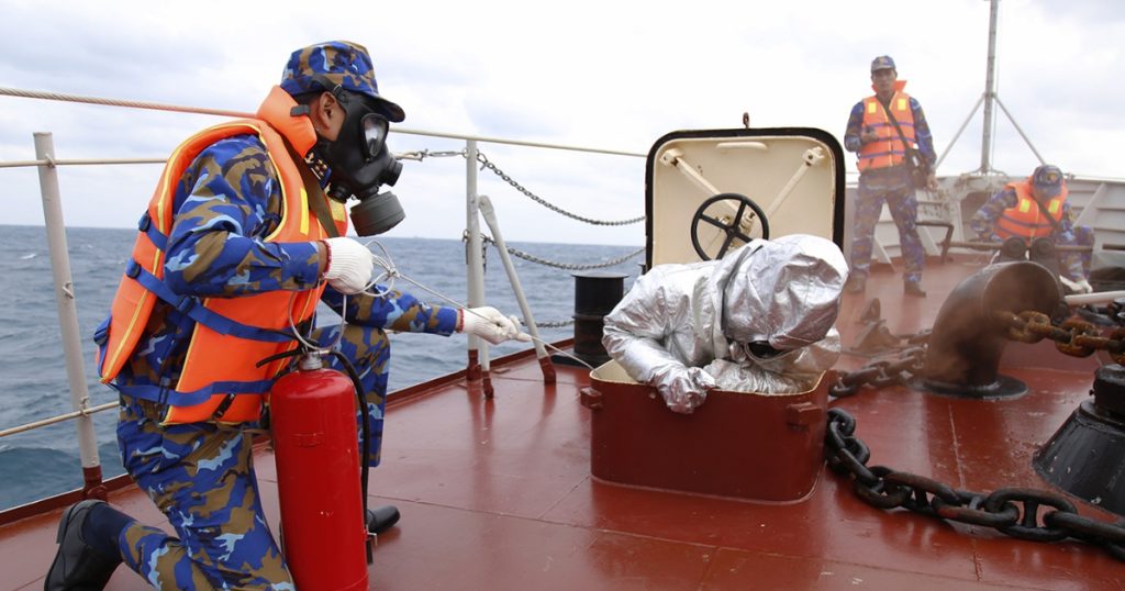 Thủy thủ tàu 17 của Hải quân Việt Nam huấn luyện thông tin đơn giản và đấu tranh bảo vệ sức sống tàu