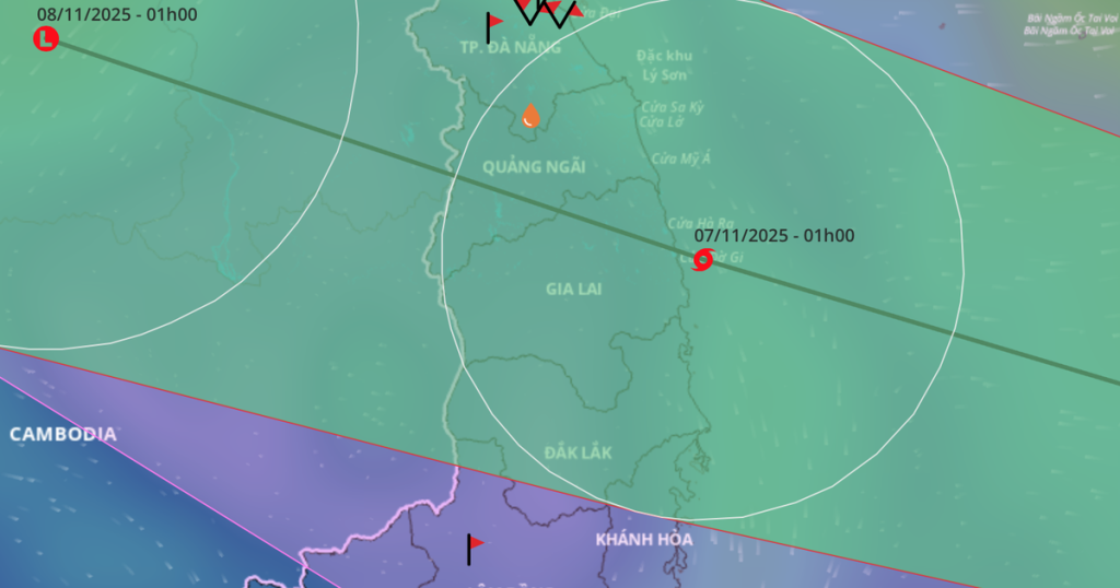 Trên khu vực miền Trung Philippines, bão Kalmaegi có cường độ mạnh cấp 12 giật cấp 15. Dự báo sẽ vào Biển Đông và trở thành cơn bão số 13 với đang hoành hành trên khu vực đất liền miền Trung Philippines, dự báo sẽ vào Biển Đông vào rạng sáng 5.11. Sau khi vào Biển Đông, bão có thể tiếp tục mạnh thêm và đạt cường độ cấp 13 – 14 giật cấp 15.
