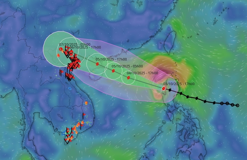 Chiều 3/10, bão Matmo vượt qua đảo Luzon (Philippines) vào Biển Đông, dự báo vào vịnh Bắc Bộ sáng 5/10, gây mưa lớn cho Bắc Bộ và Thanh Hóa.