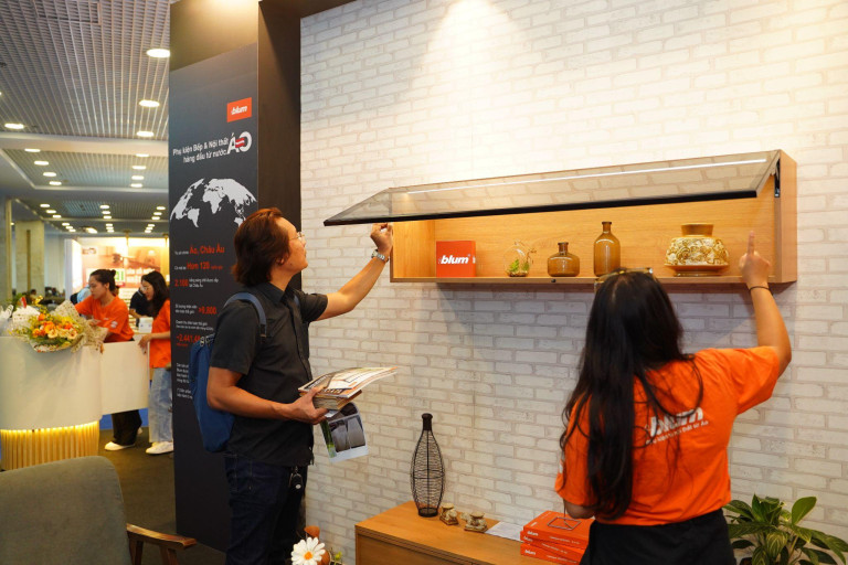 Theo đánh giá từ khách tham quan, những không gian mẫu được thể hiện trực quan, giúp họ trải nghiệm thực tế và cảm nhận rõ nét về cách tích hợp phụ kiện trong các thiết kế nội thất đa phong cách. Nhờ cách thể hiện sinh động này, gian hàng Blum thu hút hàng trăm lượt khách mỗi ngày, bao gồm kiến trúc sư, đơn vị thiết kế thi công nội thất và người tiêu dùng.