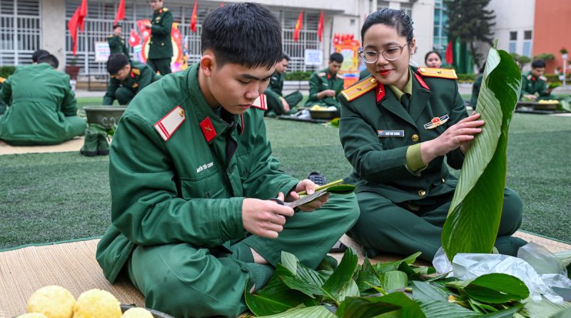 Ngày 24/1, bảy đội thi gói bánh chưng tại sân vận động của Bộ Tổng tham mưu, quận Ba Đình. Đây là hoạt động vui xuân đón Tết của Lữ đoàn 144, Bộ tổng Tham mưu, tạo không khí phấn khởi trước thềm năm mới.
