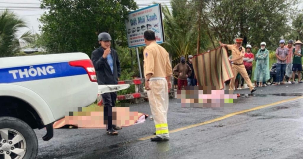 Khi đến đoạn thuộc ấp Lợi Đông, xã Hòa Mỹ, H.Cái Nước, xe khách va chạm với xe máy BS 69B1-188… do anh L.V.T (31 tuổi, ngụ H.Phú Tân) điều khiển, chở vợ là chị T.K.C (34 tuổi) lưu thông chiều ngược lại. Cú va chạm mạnh khiến anh T. và chị C. ngã xuống đường, tử vong tại chỗ.