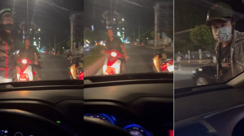 Khi đi đến đoạn gần Trường THPT chuyên Nguyễn Bỉnh Khiêm (phường Phước Hậu), thấy một nhóm người đi trên 3 xe máy có dấu hiệu say xỉn chạy vào làn dành cho xe ô tô nên anh T. bấm còi xin đường.