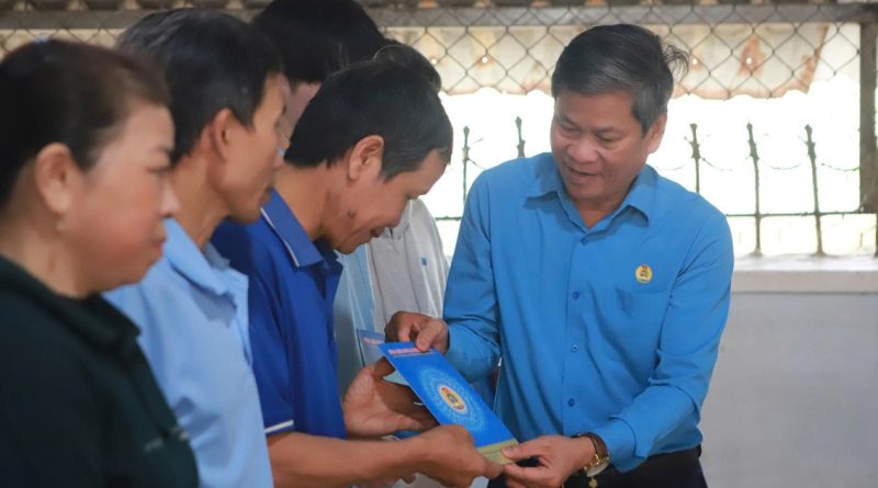 Phó chủ tịch Tổng LĐLĐ Việt Nam Huỳnh Thanh Xuân trao hỗ trợ cho đoàn viên, người lao động bị thiệt hại do bão lũ