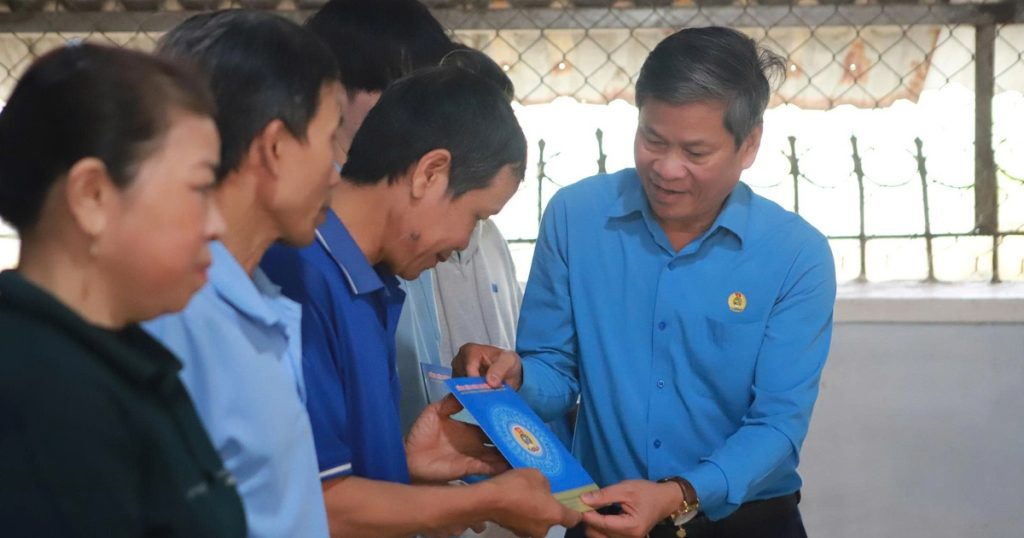 Phó chủ tịch Tổng LĐLĐ Việt Nam Huỳnh Thanh Xuân trao hỗ trợ cho đoàn viên, người lao động bị thiệt hại do bão lũ