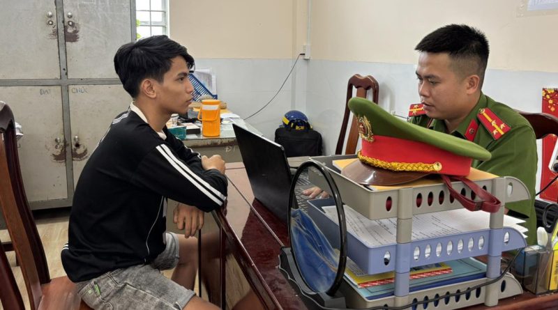 Công an xã An Thạnh, thành phố Cần Thơ làm việc với Nguyễn Đại Lợi, là 1 trong 2 nghi phạm đã thực hiện hành vi chém người