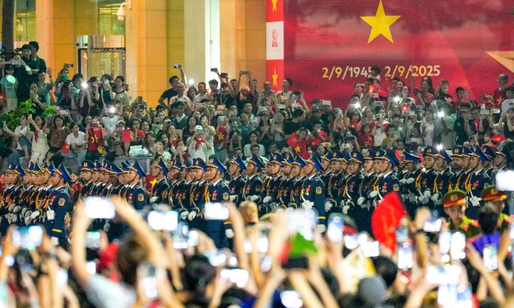 Dọc các tuyến phố gắn với những biểu tượng của Thủ đô như Nhà hát Lớn, Cột cờ, Ga Hà Nội…, người dân đứng chật kín, liên tục hò reo cổ vũ khi các khối diễu binh đi qua trong đêm sơ duyệt 27/8.