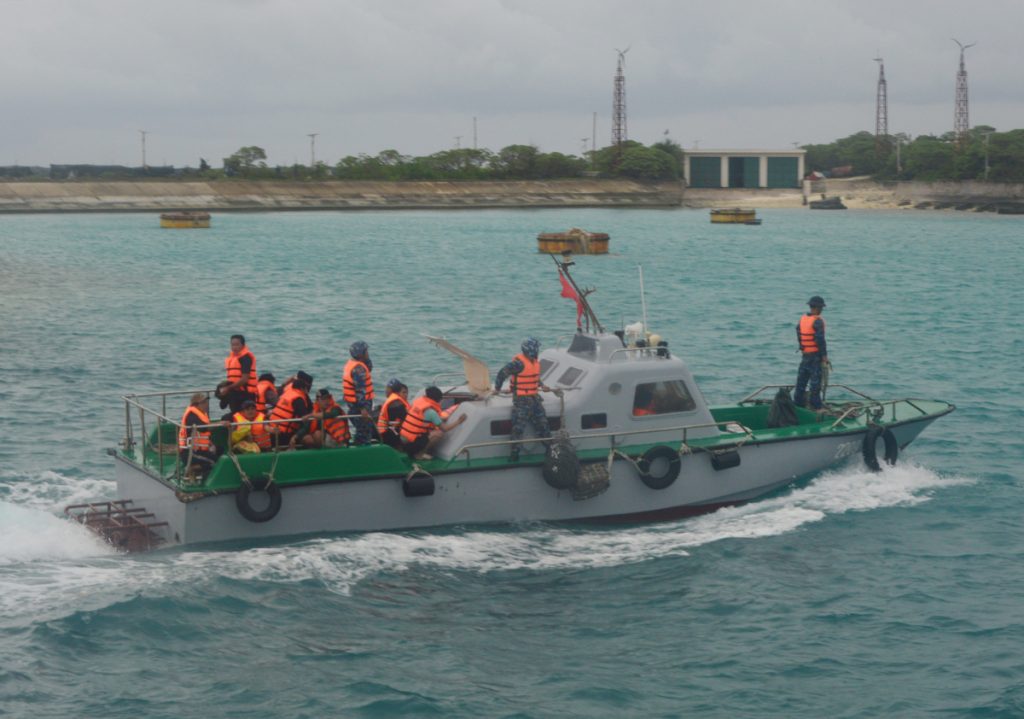 Bộ đội Hải quân đưa các ngư dân vào đảo Song Tử Tây, sáng 19/12. Ảnh: Châu Vũ