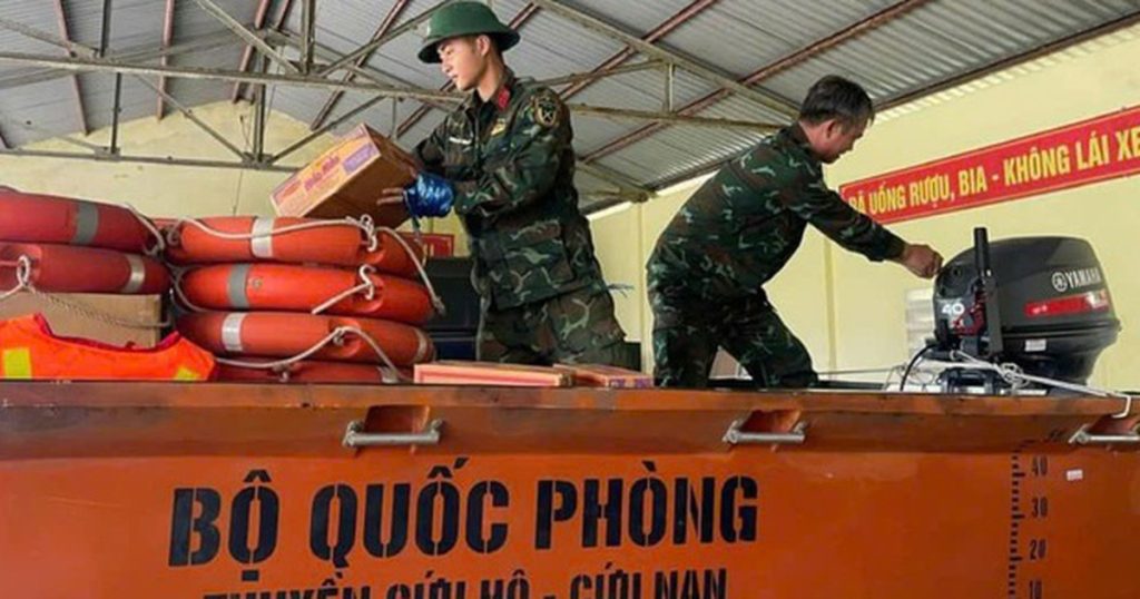 Lực lượng quân đội kiểm tra, chuẩn bị xuồng cứu hộ và áo phao sẵn sàng ứng phó mưa lớn