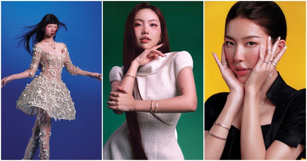 Cấu trúc tối giản của Ice Cube lấy cảm hứng từ tinh thần Art Deco, mỗi đường nét đều được tiết chế và mang chức năng rõ ràng. Sự tinh gọn ấy tạo điều kiện cho người đeo thoải mái kết hợp, biến hóa món trang sức theo nhiều phong cách. Trang phục: Soyoung (Phương Mỹ Chi) – Huelleyrose (Lamoon)