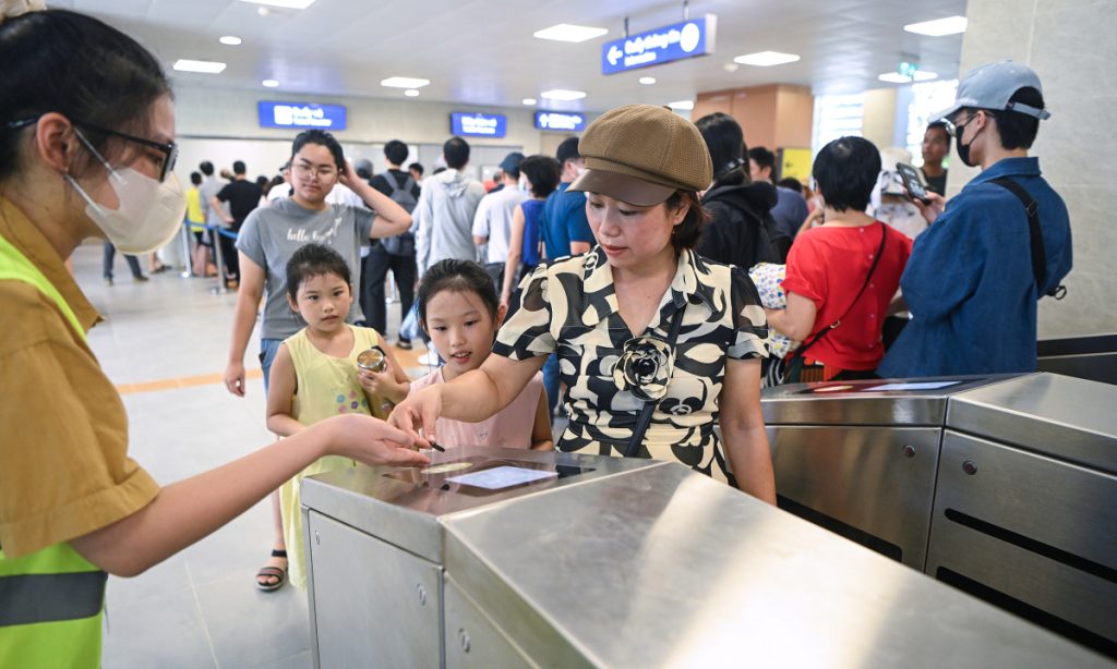 Hành khách đi tàu điện Nhổn – ga Hà Nội. Ảnh: Giang Huy