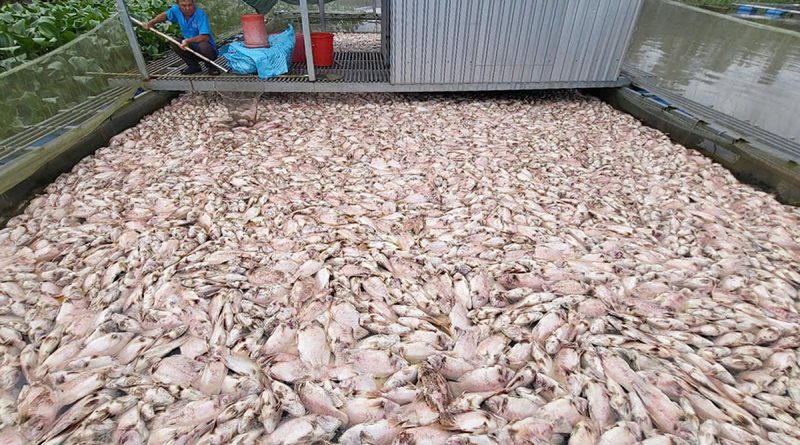Hơn 120 tấn cá điêu hồng trong gần 20 lồng bè tại xã Châu Thành và phường Hưng Phú (TP Cần Thơ) chết hàng loạt, gây thiệt hại hàng tỷ đồng, ngày 31/10.