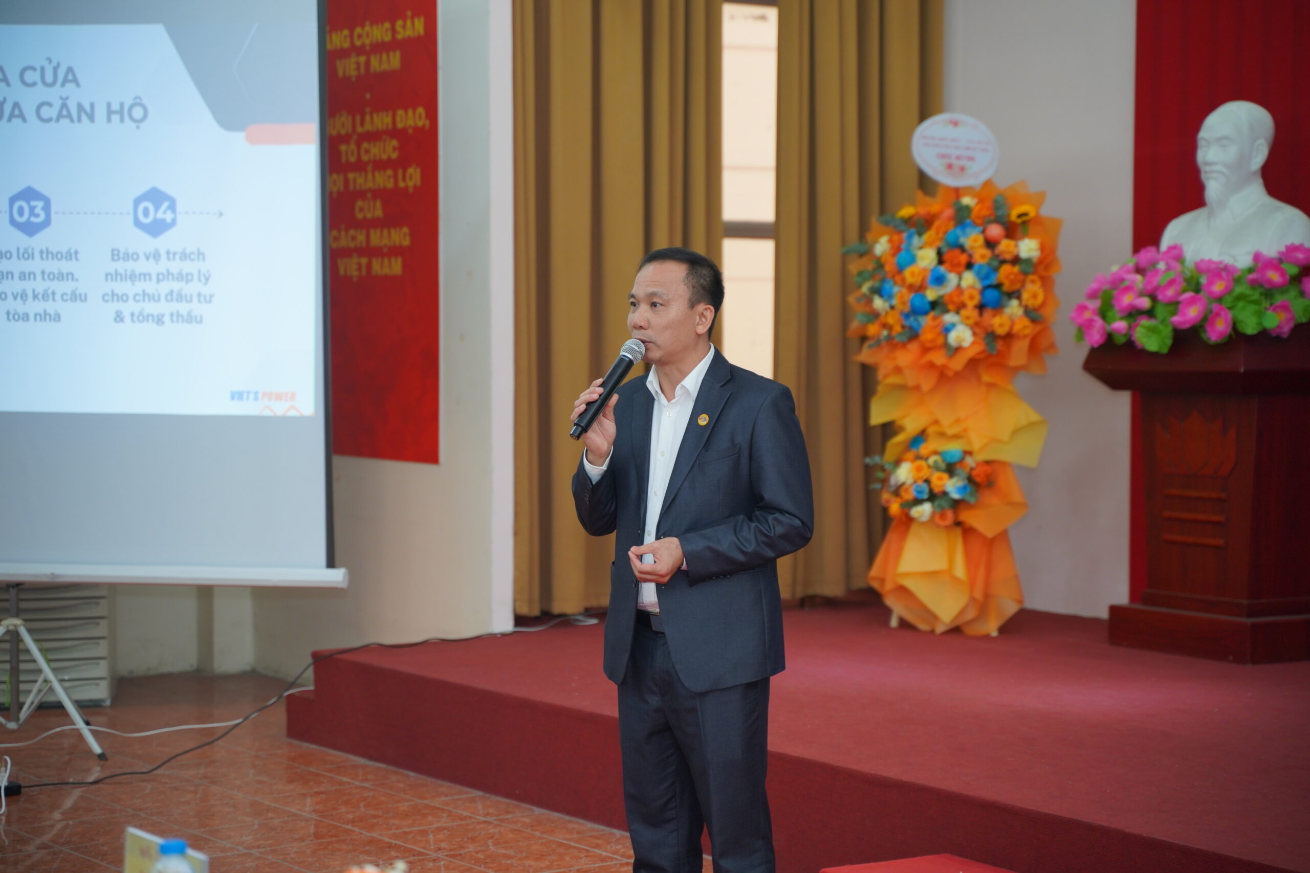 Ông Nguyễn Đức Lượng, Tổng giám đốc Công ty CP Việt’s Power nói về giải pháp cửa chống cháy đảm bảo an toàn cho nhà ở xã hội theo tiêu chuẩn hiện đại, trong đó nhấn mạnh vai trò bảo vệ của cửa chống cháy tại cửa căn hộ và ưu điểm của cửa gỗ chống cháy cho nhà ở xã hội.