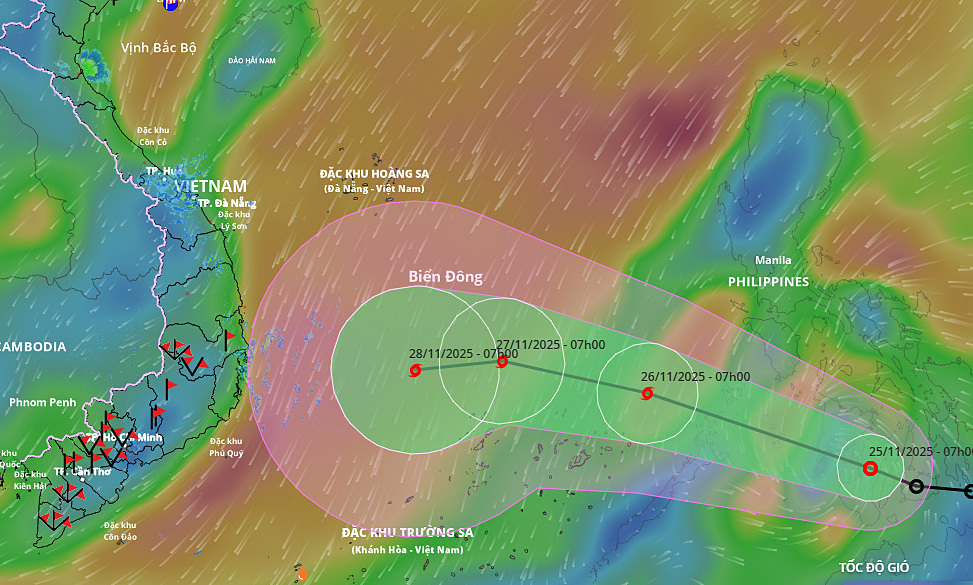 Ảnh hưởng của áp thấp nhiệt đới, từ chiều tối nay, vùng biển phía đông của giữa Biển Đông và vùng biển đông bắc nam Biển Đông gió mạnh dần lên cấp 6-9, giật cấp 11, sóng biển cao 3-5 m. Khoảng chiều 26 đến 28/11, giữa Biển Đông và vùng biển phía bắc Nam Biển Đông (gồm vùng biển phía bắc đặc khu Trường Sa) có khả năng chịu tác động của gió mạnh cấp 10-11, giật cấp 14.