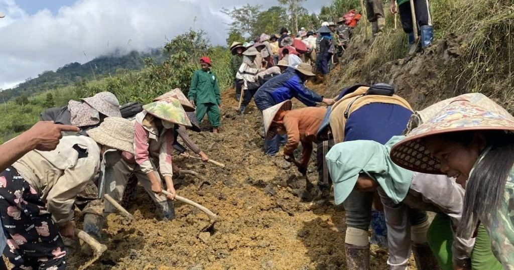 Người dân xã Ngọc Linh (Quảng Ngãi) tham gia khắc phục tại điểm sạt lở giao thông