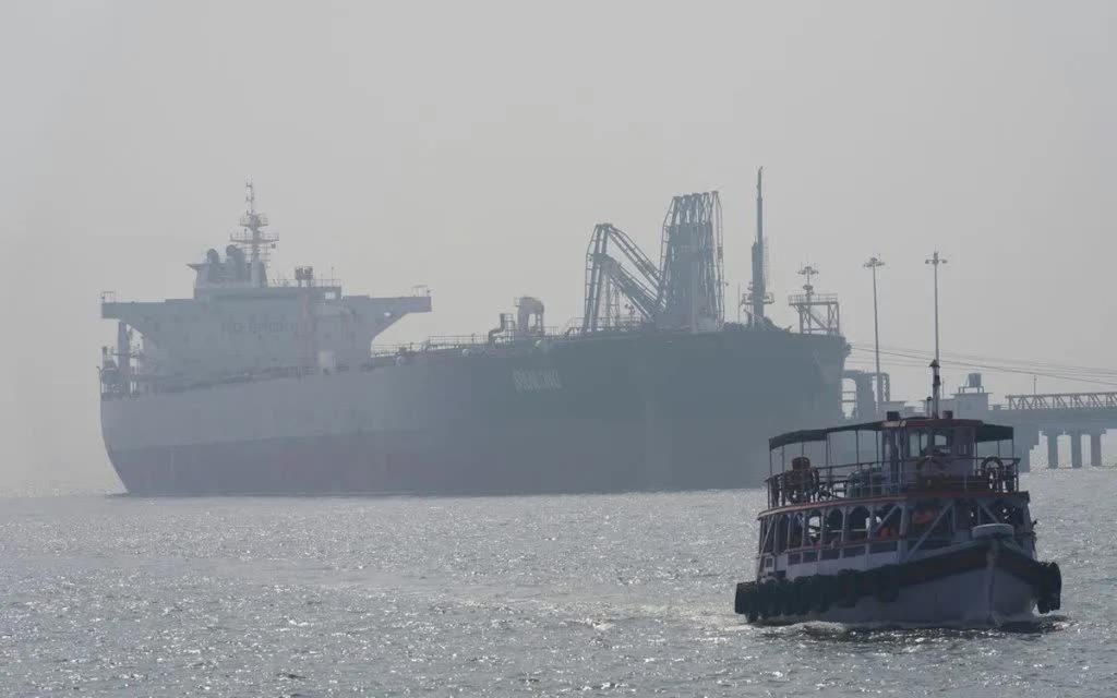 Ngày 11/3/ 2026, tàu chở dầu thô Shenlong Suezmax mang cờ Liberia đã cập cảng Mumba, Ấn Độ thành công sau khi vượt qua eo biển Hormuz (Ảnh: AP)