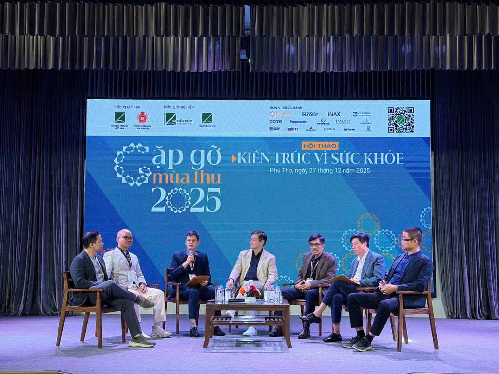 Ngày 27/12/2025, tại tỉnh Phú Thọ, Hội Kiến trúc sư Việt Nam đã tổ chức Hội thảo Gặp gỡ Mùa Thu 2025 với chủ đề “Kiến trúc vì Sức khỏe”. Sự kiện quy tụ đông đảo đại biểu đến từ các cơ quan Trung ương, địa phương, giới chuyên gia, nhà khoa học, kiến trúc sư trong nước và quốc tế, tiếp tục khẳng định vai trò của chương trình Gặp gỡ Mùa Thu như một diễn đàn học thuật có chiều sâu, nơi các vấn đề cốt lõi của hành nghề kiến trúc đương đại được đặt ra, phân tích và đối thoại nghiêm túc.