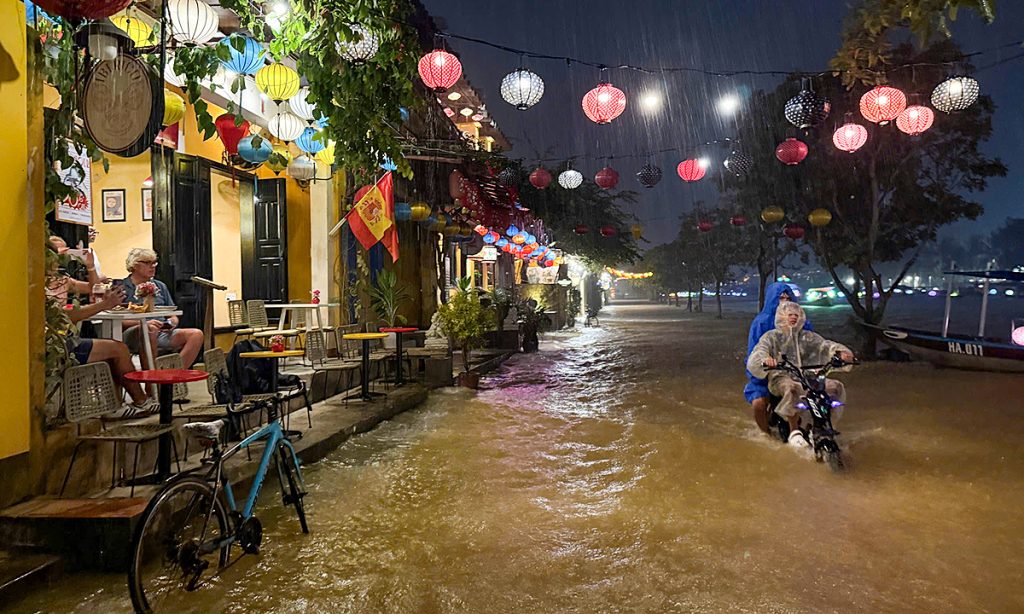 Mưa lớn trên diện rộng khiến nhiều hồ thủy điện xả điều tiết, nước từ thượng nguồn dồn về nhanh làm phố cổ Hội An ngập trở lại trong đêm.