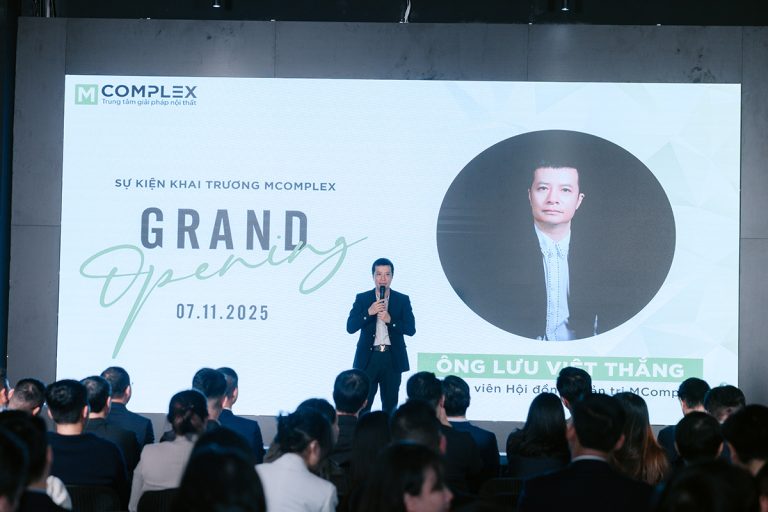 Sáng ngày 7/11/2025, Lễ khai trương Trung tâm giải pháp nội thất MComplex đã chính thức diễn ra tại Vincom Mega Mall Royal City (72A Nguyễn Trãi, Thanh Xuân, Hà Nội); đánh dấu bước phát triển quan trọng trong hành trình xây dựng mô hình “một điểm đến” khác biệt, cung cấp giải pháp toàn diện cho các bên từ thương hiệu, chuyên gia và người tiêu dùng trong lĩnh vực vật liệu – thiết bị – hoàn thiện nội thất tại Việt Nam.
