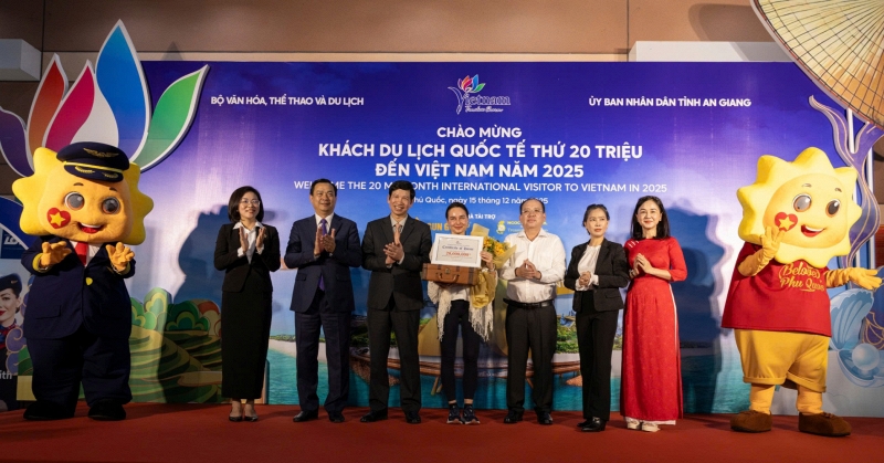 Chiều 15/12/2025, tại Cảng hàng không quốc tế Phú Quốc, Bộ Văn hóa, Thể thao và Du lịch, Cục Du lịch Quốc gia Việt Nam phối hợp với Ủy ban nhân dân tỉnh An Giang và các doanh nghiệp tại địa bàn long trọng tổ chức Lễ đón vị khách du lịch quốc tế thứ 20 triệu đến Việt Nam.