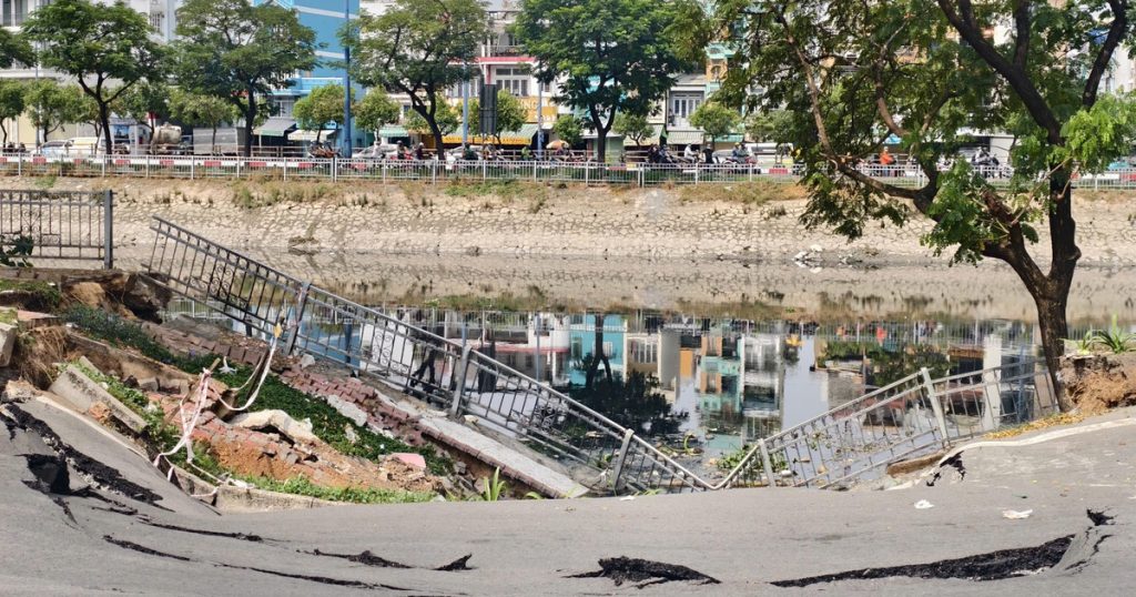 Hiện trường vụ sụt lún kè, vỉa hè ven kênh Tàu Hủ