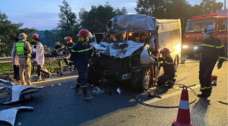 Va chạm giữa xe khách 16 chỗ chở 12 người và xe đầu kéo trên cao tốc Đà Nẵng – Quảng Ngãi khiến 3 người tử vong tại chỗ và 10 người bị thương, sáng 9/12.