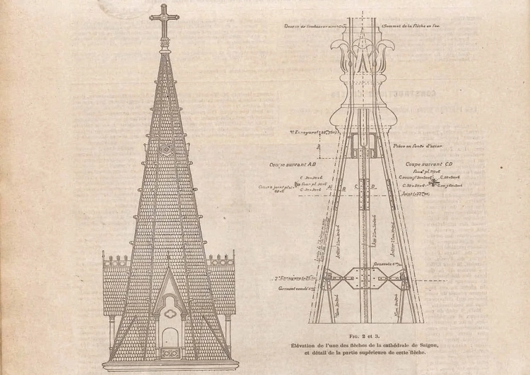 Nhà thờ nằm ở trung tâm TP HCM hoàn thành năm 1880, ban đầu chỉ có hai tháp chuông hình vuông. Gần 15 năm sau, nhà thờ xây thêm hai tháp chuông hình chóp và có 6 chuông đồng lớn. Trên mỗi đỉnh tháp đính một thánh giá cao 3,5 m, ngang 2 m, nặng 600 kg. Tổng thể chiều cao từ mặt đất lên đỉnh thánh giá hơn 60 m.