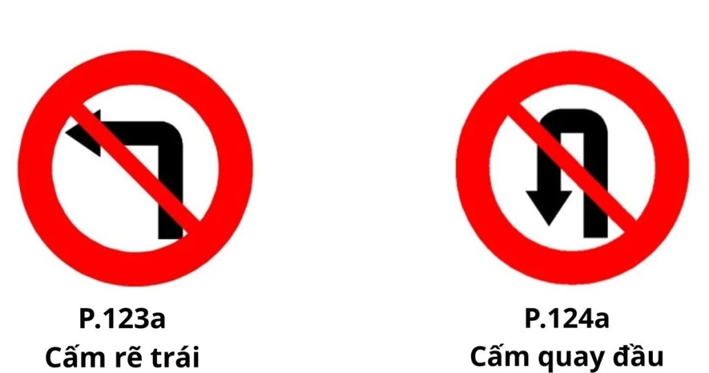 Theo QCVN 41:2019/BGTVT, biển P.123a có hình tròn nền trắng viền đỏ, bên trong là mũi tên màu đen cong sang trái, gạch chéo đỏ, có ý nghĩa cấm rẽ trái, không bao gồm hành vi quay đầu xe. Trong khi đó, biển P.124a sử dụng biểu tượng mũi tên dạng chữ U, thể hiện rõ lệnh cấm quay đầu. Như vậy, nếu chỉ có biển “cấm rẽ trái”, tài xế vẫn được phép quay đầu.