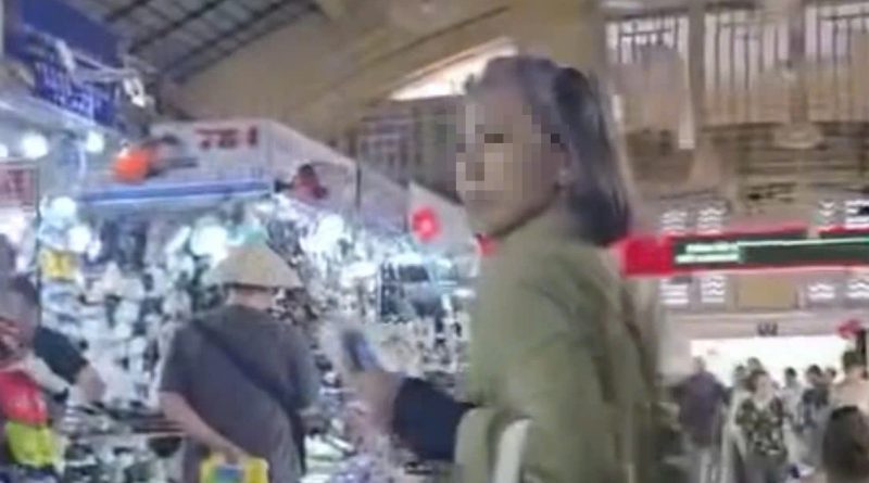 Có lúc người này lớn tiếng, tay cầm một sấp giấy tờ chạy tới lui, làm nhiều du khách chỉ biết xua tay né tránh. Hành động này của người phụ nữ lặp đi lặp lại nhiều lần khiến những người trong chợ tập trung theo dõi.
