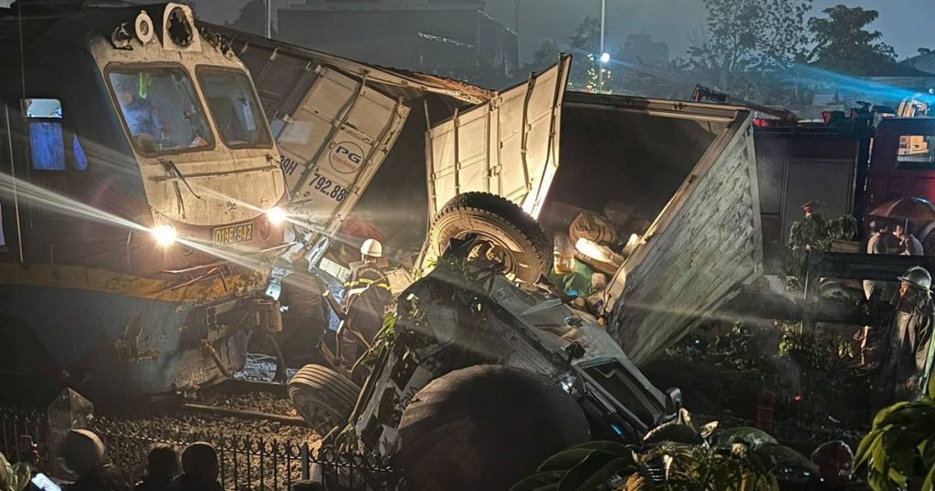 Vụ tai nạn giao thông giữa tàu hỏa và ô tô tải xảy ra vào lúc 19 giờ 50 ngày 25.2 tại QL1A (xã Ngọc Hồi, Hà Nội).